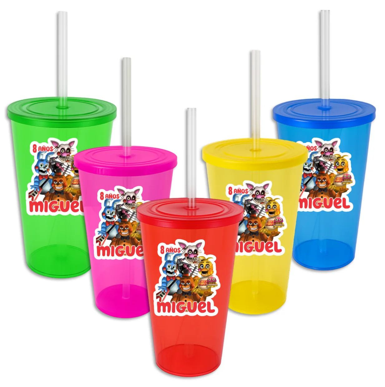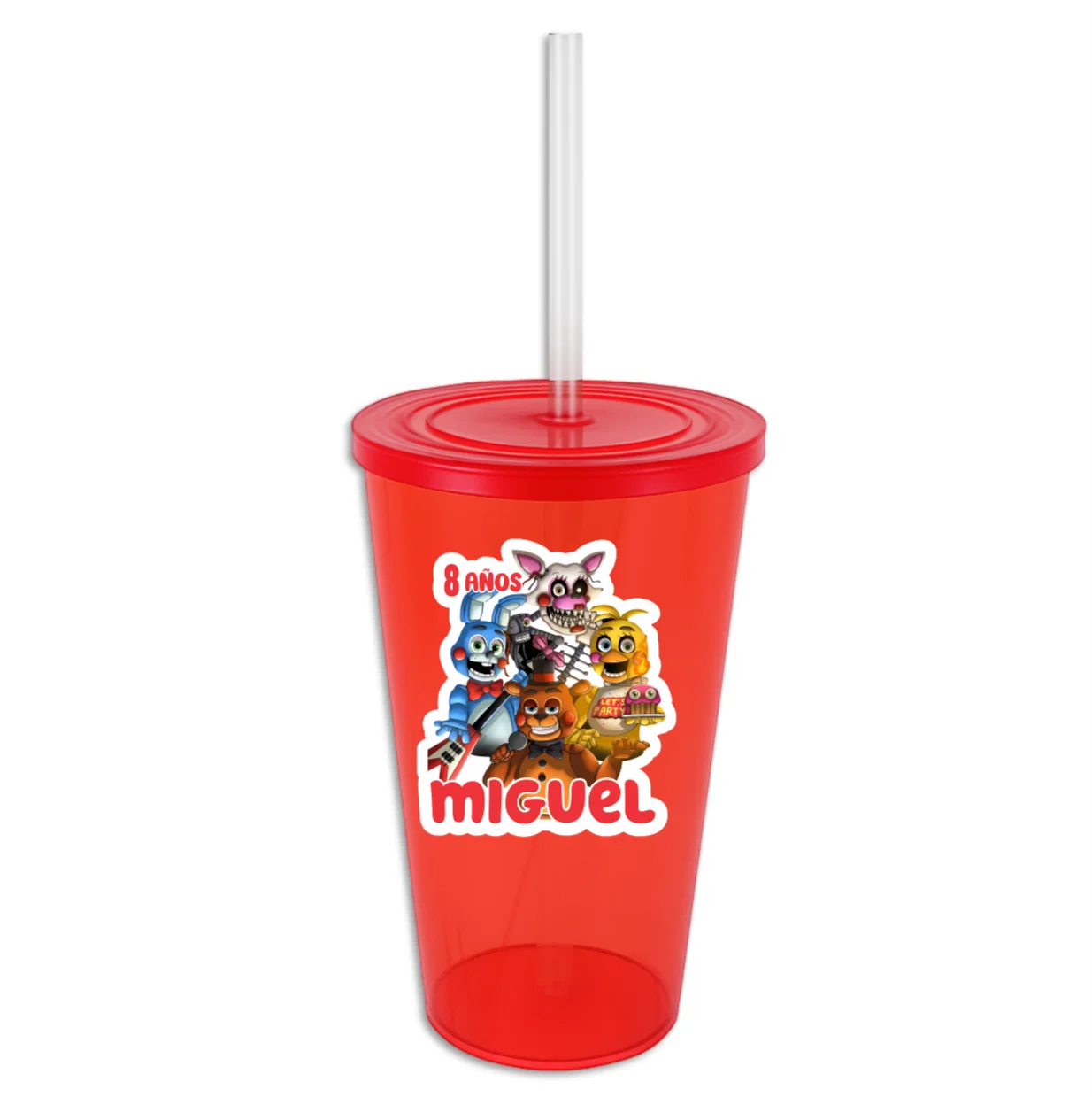 Haz que tu evento sea único con este vaso de plástico rígido con tapa y popote reutilizable. Incluye una etiqueta en vinil personalizada con el diseño y nombre que elijas.
